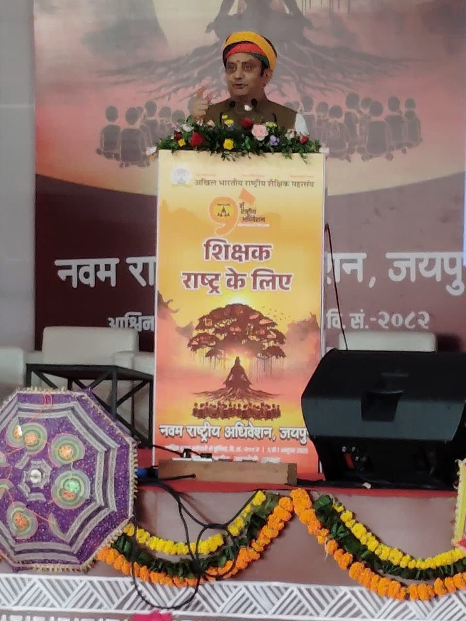 आज अखिल भारतीय राष्ट्रीय शैक्षिक महासंघ का राष्ट्रीय अधिवेशन जयपुर में संपन्न हुआ। कार्यक्रम में मुख्य अतिथि एवं वक्ता राज्यसभा सांसद डॉक्टर सुधांशु त्रिवेदी ने राष्ट्रीय सुरक्षा सीमा से समाज तक विषय पर अपना उद्बोधन देते हुए कहां कि जहां कुछ वर्षों पूर्व हमें शक्तिशाली एवं बड़े देश होने के बाद भी पडौसी छोटे देश का डर सताता था, लेकिन आज प्रधानमंत्री नरेंद्र मोदी के कुशल नेतृत्व में सीमा पर ऑपरेशन सिंदूर में हमारी सेना ने अप्रतिम एवं अद्वितीय शौर्य का प्रदर्शन कर पड़ौसी देश की सीमाओं में 150 से 300 किलोमीटर अंदर जाकर उनके एयर डिफेंस पर मिसाइलें गिराई उसे तबाह कर दिया और आतंकी केंद्रो को नष्ट कर आतंकियों को बेबस कर उन्हें घुटनों पर ला दिया। ऑपरेशन सिंदूर में चाइनीस डिफेंस तंत्र पूरी तरह फेल हो गया जबकि भारत का डिफेंस तंत्र पूरी तरह से प्रभावी सिद्ध हुआ। लेकिन विश्व पटल पर कार्यरत एक इकोसिस्टम ने इसे धुंधला कर मिटाने का प्रयास किया। हमारे समाज ,राजनीति और बौद्धिक प्रतिष्ठान में देश और विदेश में एक वर्ग ऐसा है जो हमारी सफलताओं पर भी प्रश्न चिन्ह खड़ा करने का कार्य करता है। जो भारत में हिंदुत्व की ताकत को कमजोर करने के लिए अल्पसंख्यकों, आरक्षित वर्गों, कमजोर एवं दलित वर्गों ,मीडिया आदि सभी को अपना लक्ष्य बनाता है और हमारे प्रजातंत्र के लिए खतरा बना हुआ है।