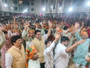 इस भक्ति संध्या का आयोजन जलवन्त टाऊनशिप जैन परिवार मंडल की ओर से किया गया, जिसमें मोहन खेड़ा से आए प्रसिद्ध गायक कलाकार दिव्येश जैन ने अपनी सुमधुर प्रस्तुति से समां बांध दिया। जैसे ही भजनों की तान छेड़ी गई, महिलाएं, पुरुष, युवक और युवतियां भाव-विभोर होकर थिरक उठे। खास बात यह रही कि युवाओं में भक्ति का उत्साह देखते ही बन रहा था। देर रात तक चले कार्यक्रम में भैरव बाबा के भजनों पर युवाओं ने मन भरकर नृत्य किया और माहौल पूरी तरह भक्तिरस में डूब गया।